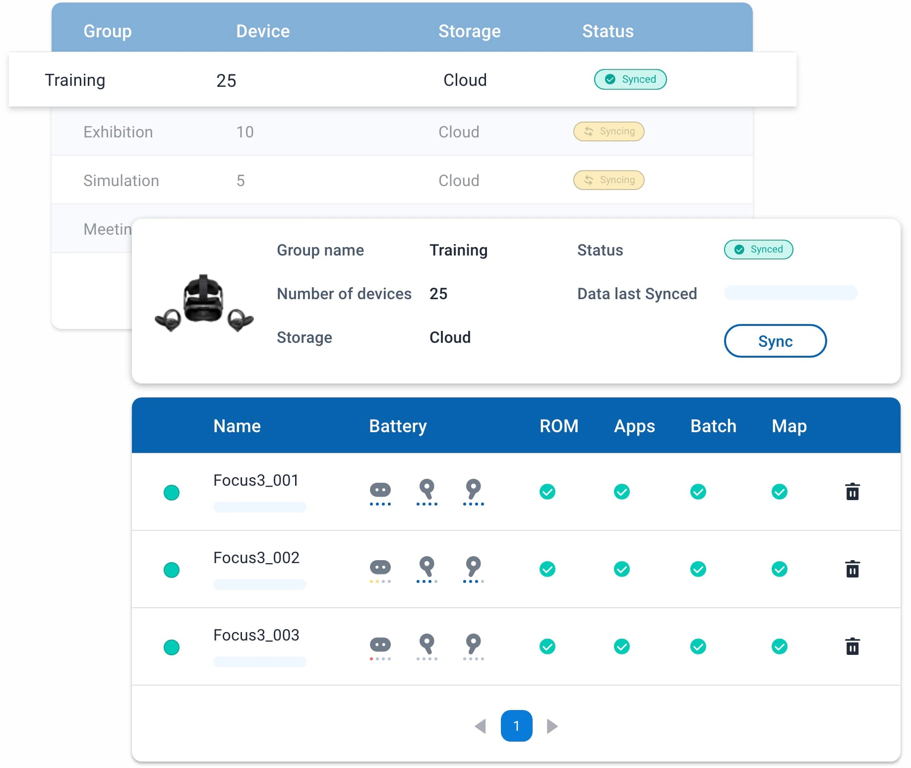 - Gestión centralizada de dispositivos VR: Con Arbor XR, puede gestionar todos sus visores de realidad virtual desde una sola plataforma centralizada. Ya tenga visores de distintas marcas o modelos variados, la solución le permite gestionarlos eficazmente, supervisarlos y actualizarlos fácilmente.